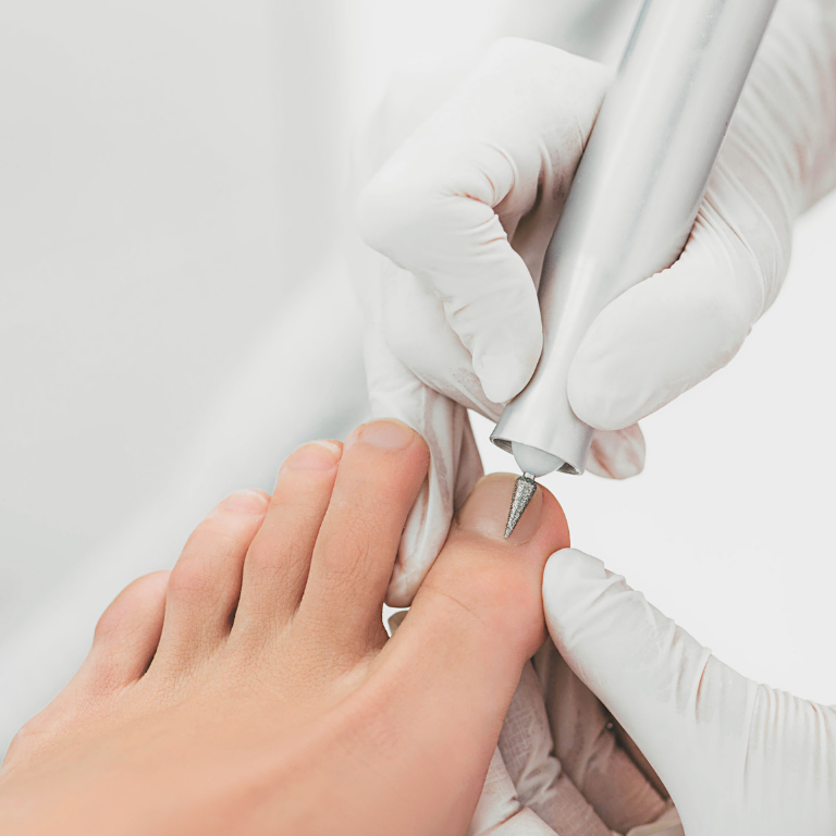 - Nagelpflege: Kürzen und Feilen der Zehennägel in die gewünschte Form.