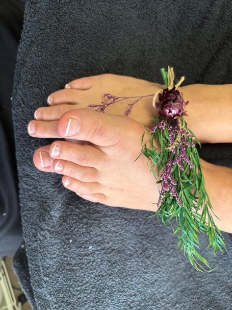 - Abschlusspflege: Eine entspannende Fußmassage mit Creme oder Lotion.